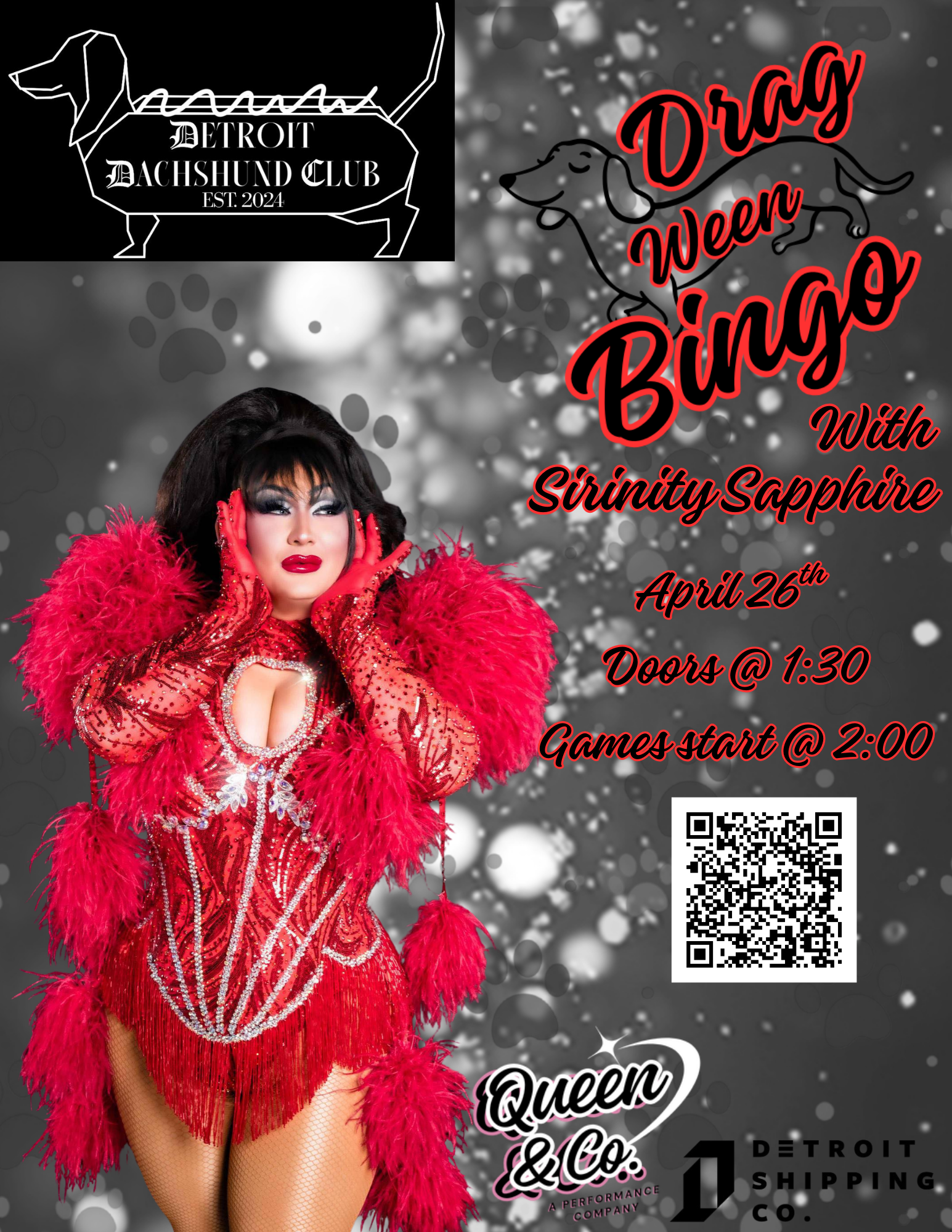Expect lively bingo rounds, tons of dachshund puns, interactive moments, and a standout drag performance! With great food, drinks, and prizes on the line, it’s an easy, fun way to gather friends and enjoy an afternoon filled with energy, laughs, and unforgettable entertainment in a welcoming atmosphere for a great cause. Doors at 1:30PM, Show begins by 2:00. Ticket includes $5 donation to Detroit Dachshund Club!